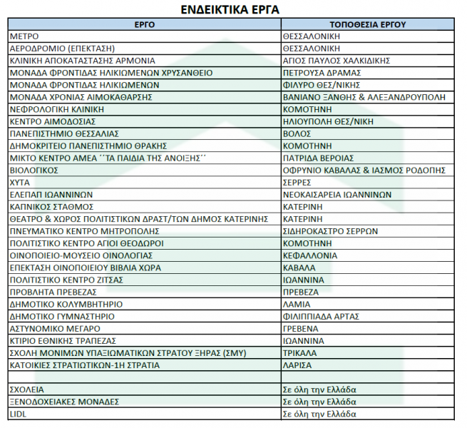 Ξενοδοχειακές μονάδες, βιομηχανικά κτίρια, σχολεία, δικαστικά μέγαρα, δημόσια κτίρια, πολυτελή συγκροτήματα κατοικιών έχουν κατασκευαστεί με τα προϊόντα μας.